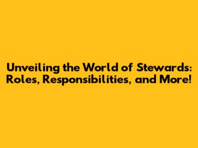 Unveiling The World Of Stewards: Roles, Responsibilities, And More!
