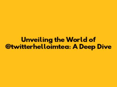 Unveiling The World Of @twitterhelloimtea: A Deep Dive