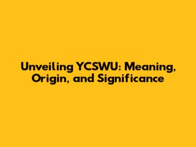 Unveiling YCSWU: Meaning, Origin, And Significance