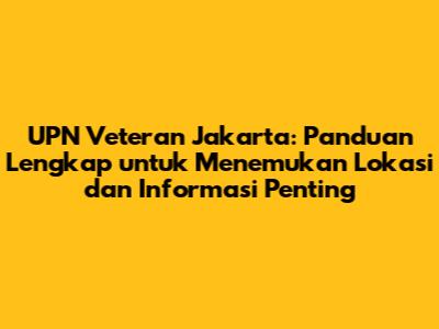 UPN Veteran Jakarta: Alamat Lengkap Dan Informasi Penting