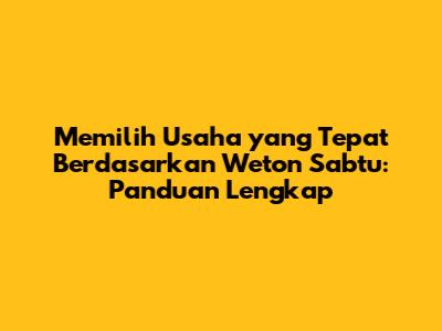 Usaha Yang Cocok Untuk Weton Sabtu