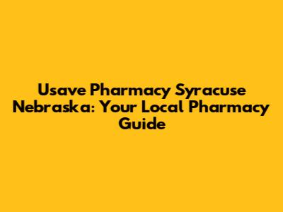 Usave Pharmacy Syracuse NE: Your Local Pharmacy Guide