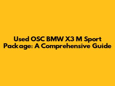 Buying a used OSC BMW X3 M Sport Package can be a smart move, providing you with a blend of luxury, performance, and style at a more affordable price. By thoroughly researching and inspecting potential vehicles, you can find a well-maintained X3 M Sport that suits your needs and budget. Remember to pay close attention to the specific features of the M Sport package, inspect the vehicle's mechanical condition, and consider the OSC branding. Happy hunting, and enjoy the ride!