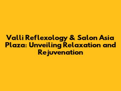 Hey there, wellness enthusiasts! Today, we're diving deep into the world of Valli Reflexology & Salon Asia Plaza, a haven for those seeking the ultimate relaxation and rejuvenation experience. Located in the bustling heart of Asia Plaza, this spot offers a sanctuary from the everyday hustle. We'll explore everything from the services offered to the overall atmosphere, giving you a comprehensive look at why Valli Reflexology might just become your new favorite escape. So, let's get into it, shall we?