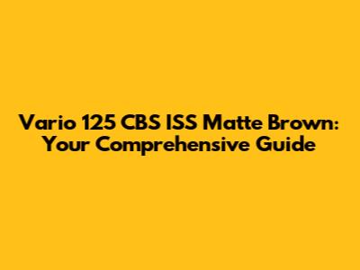 Vario 125 CBS ISS Matte Brown: Ultimate Guide
