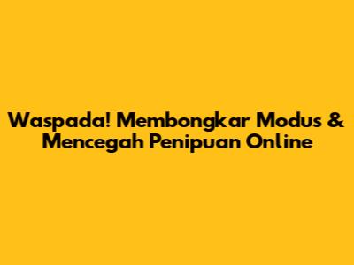 Penipuan online adalah ancaman nyata yang harus kita hadapi dengan kewaspadaan dan kecerdasan. Dengan memahami berbagai modus penipuan, melindungi informasi pribadi, dan mengambil langkah-langkah preventif, kita dapat meminimalisir risiko menjadi korban. Jangan pernah ragu untuk mencari informasi tambahan, bertanya kepada orang lain, atau menghubungi pihak yang berwenang jika Anda merasa ragu atau curiga. Ingat, mencegah lebih baik daripada mengobati. Mari kita bersama-sama menciptakan lingkungan online yang aman dan terpercaya!