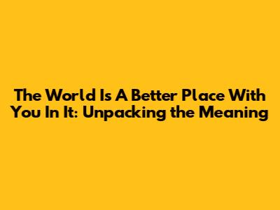 Hey everyone, let's dive into something truly special today. We're talking about that phrase, "the world is a better place with you in it." It's more than just a sweet saying, right? It's a profound acknowledgment of someone's impact, their unique light, and the positive ripple effect they create just by existing. Think about it, guys – in a world that can often feel chaotic and overwhelming, remembering and expressing that someone makes things better is incredibly powerful. It’s about recognizing the tangible and intangible ways a person contributes, whether it’s through their kindness, their creativity, their humor, or simply their presence. This phrase isn't just flattery; it's a deep-seated appreciation for the essence of a person and how it elevates the collective experience. It speaks to the idea that every individual has a unique value, a specific color they add to the grand tapestry of life, and when that color is present, the whole picture is richer, brighter, and more vibrant. So, when someone tells you this, or when you feel it for someone else, it's a moment to pause and truly feel the significance. It's a validation that your existence matters, that your contributions, no matter how small they may seem, are noticed and cherished, and that the world, in its vastness, is demonstrably improved by your unique presence. It’s an antidote to feelings of insignificance and a powerful reminder of our interconnectedness and the profound impact we can have on each other's lives. It’s a phrase that can lift spirits, mend hearts, and reinforce the beautiful truth that each of us plays a vital role in making the world a more wonderful place.