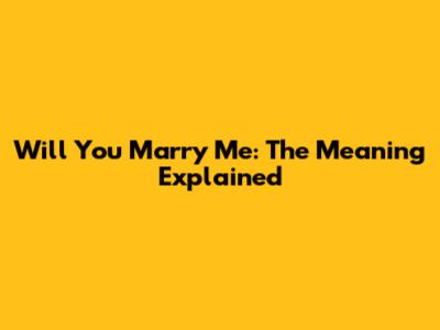 Will You Marry Me: The Meaning Explained
