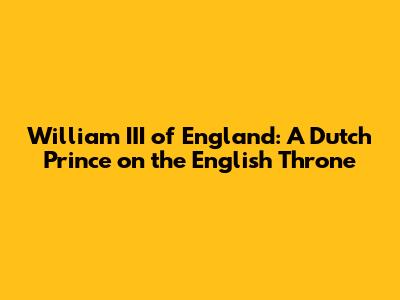 William III Of England: A Dutch Prince On The English Throne