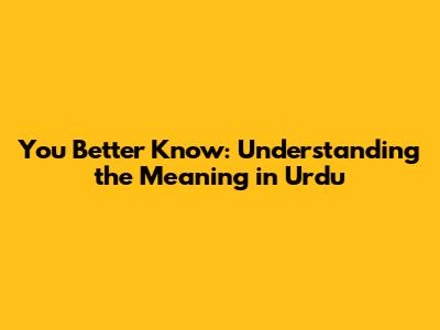 You Better Know: Understanding The Meaning In Urdu