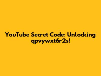 YouTube Secret Code: Unlocking Qpvywxt6r2s!