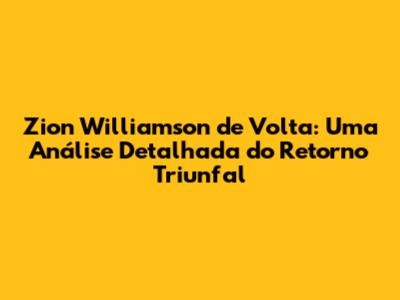 Zion Williamson: O Retorno Triunfal À NBA